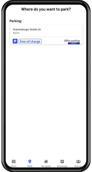 1. On the main screen, select "Park" or "Book". Then select the parking lot you will use.