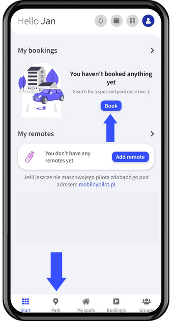 3. If you are parking for the first time, enter your car's license plate number and specify the type of drive, the other fields are optional. Remember that you can always add another car during the next reservation. Confirm your reservation by clicking "I book".
