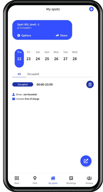 3. When you want to cancel the sharing of your spot, just click the trash can icon. Remember that you have to cancel the sharing of your parking spot for each day.