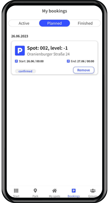 4. When someone reserves your spot you will receive a notification. If you want to cancel the reservation, click the trash can icon, then confirm the cancellation.