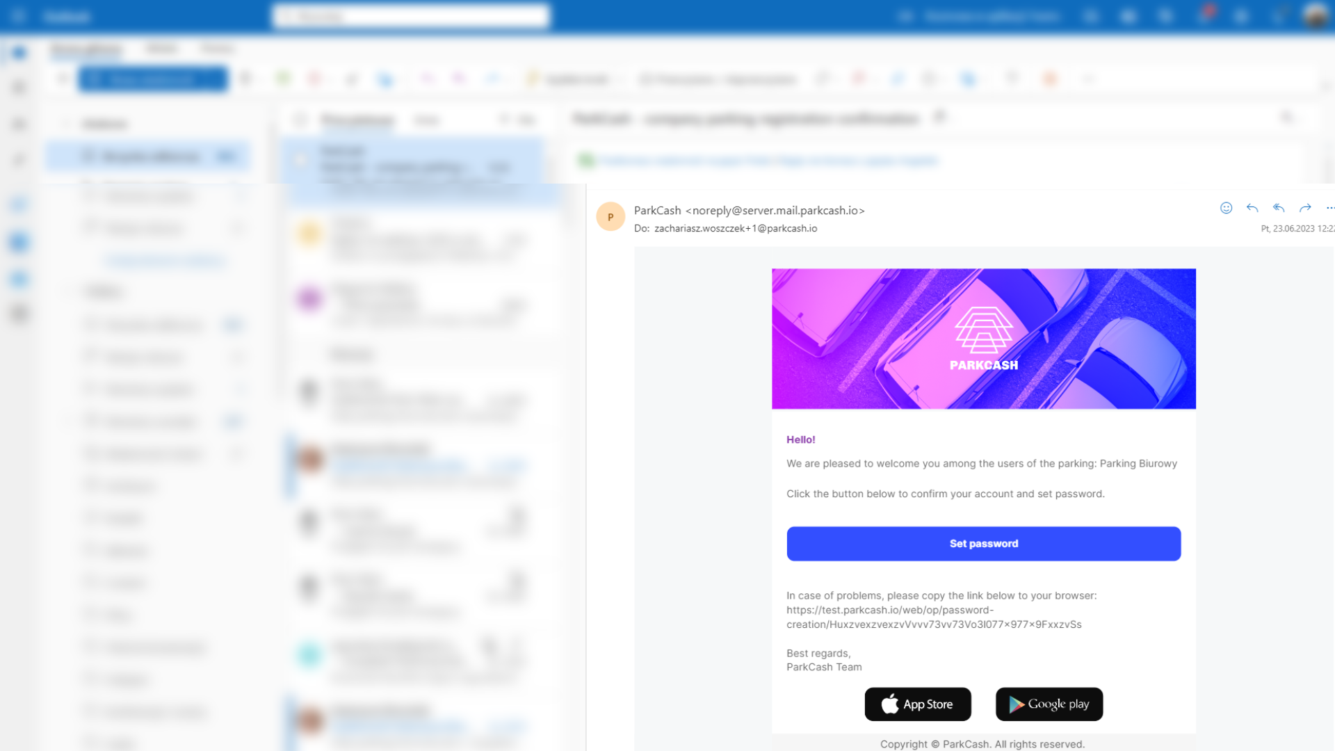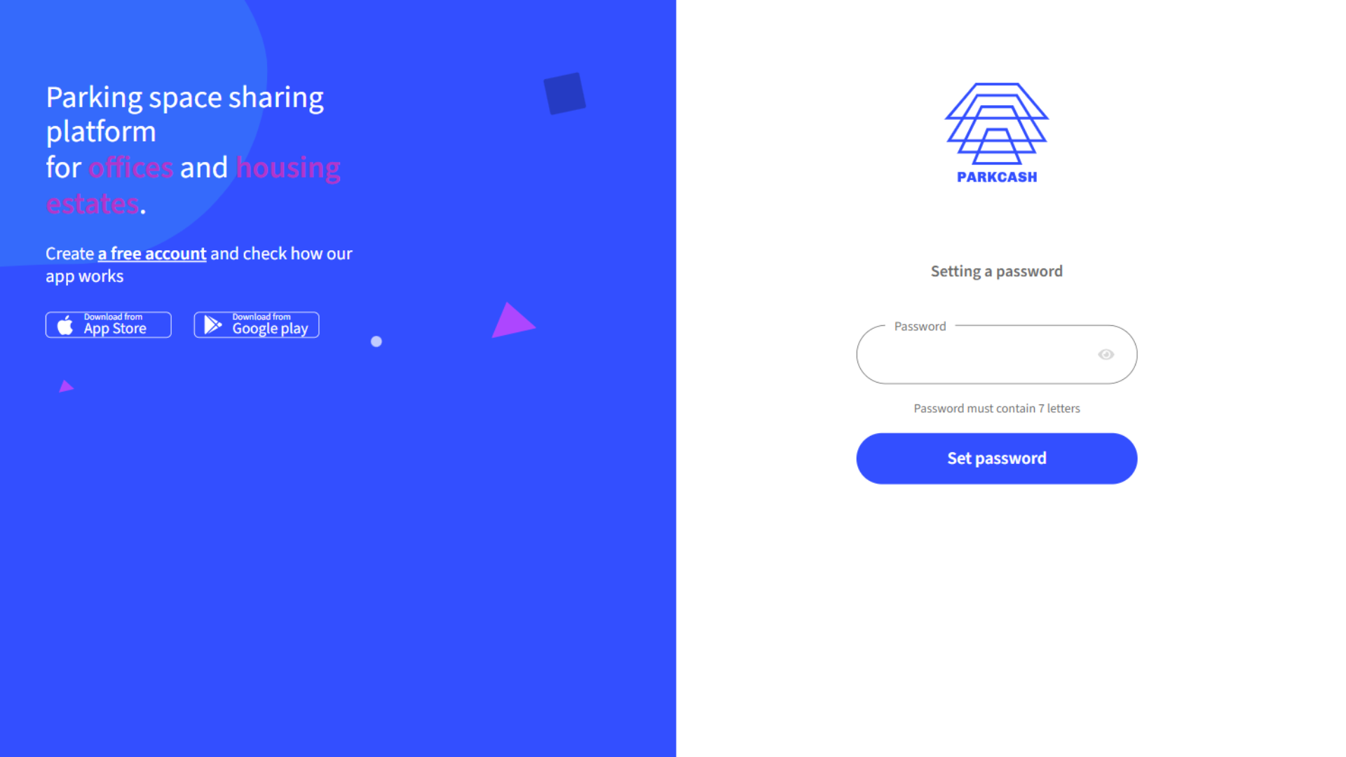 1. You have received a message to your mailbox inviting you to use ParkCash. Follow the instructions - set your login password in the ParkCash app.