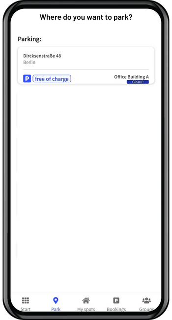 1. On the main screen, select "Park" or "Book". Then select the parking lot you will use.