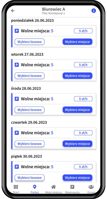 4. Po potwierdzeniu konta zostaniesz automatycznie przypisany do grupy, w której możesz zarezerwować miejsca parkingowe.