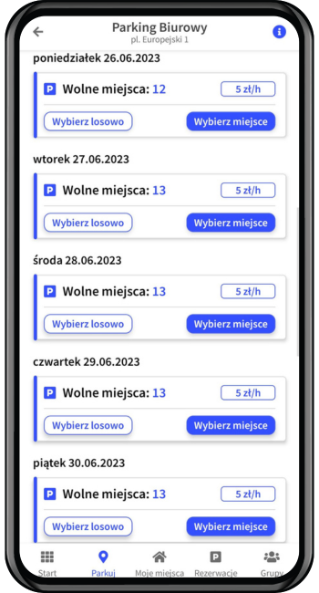 4. Po potwierdzeniu konta zostaniesz automatycznie przypisany do grupy, w której możesz zarezerwować miejsca parkingowe.