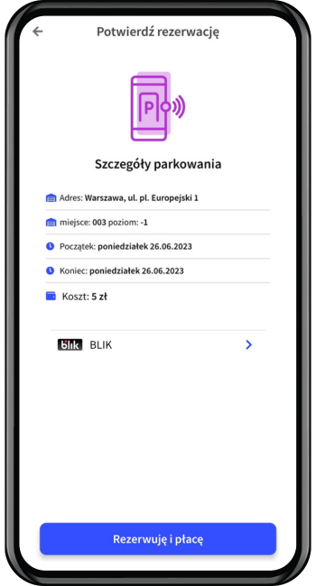 1. Na ekranie głównym wybierz "Parkuj" lub "Rezerwuj". Następnie wybierz parking z którego będziesz korzystał.